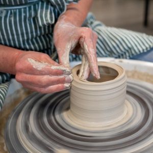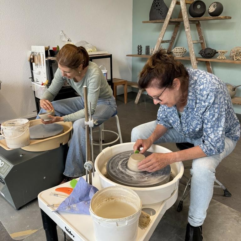 Wir zeigen dir an einem ersten Halbtag, wie man den Ton vorbereitet, zentriert, aufbricht und den Boden formt, Wände hochzieht und dem guten Stück eine Form gibt. Der zweite Halbtag ist dann dem Abdrehen gewidmet.